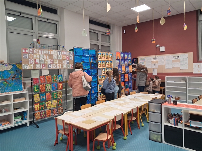 Cette année, les élèves de GS CP de Mme BORNAREL et de CM1 CM2 de Mesdames NOUGIER et GUZEL ont embarqué dans une aventure artistique et culturelle autour d’un projet intitulé "Autour du monde". A l’occasion du marché de Noël, ils ont eu la fierté de présenter leurs premières œuvres au public lors d’une exposition sur le thème de l’Europe et de l’Afrique.
